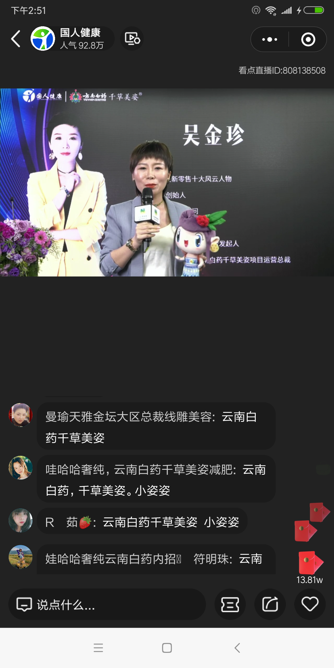 100万+人齐聚直播间,共同见证云南白药千草美姿问世,共享大健康盛世。
