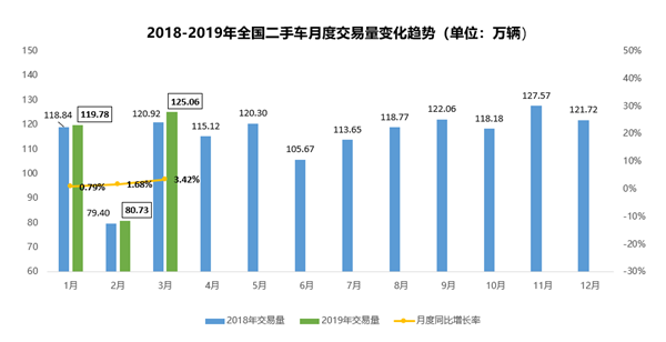 2019年一季度,中国汽车销量同比下降11.3%,乘用车销量同比下降13.7%。各大车企纷纷采取下调新车售价,激活新车购买用户,因此二手车交易量也受到影响,累计交易325.5万辆,仅同比微增2.01%。