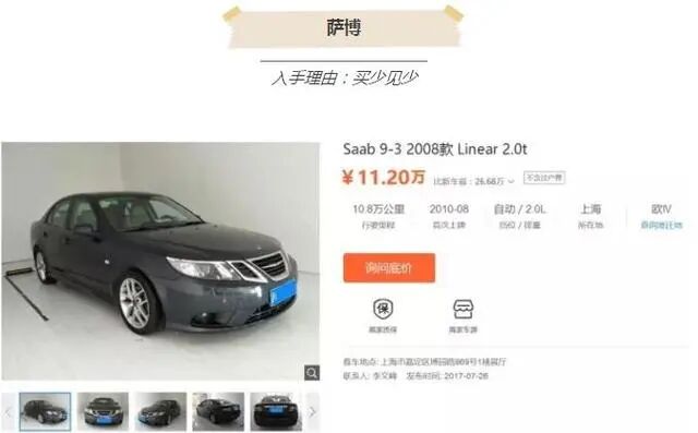 但现在要买萨博并不贵,12-15万就有交易,就能拥有贴地飞行的感觉,只不过诚恳告诫大家,小问题比路虎多,北欧制造在中国又容易水土不服,关键是配件巨贵,可谓平买贵用。