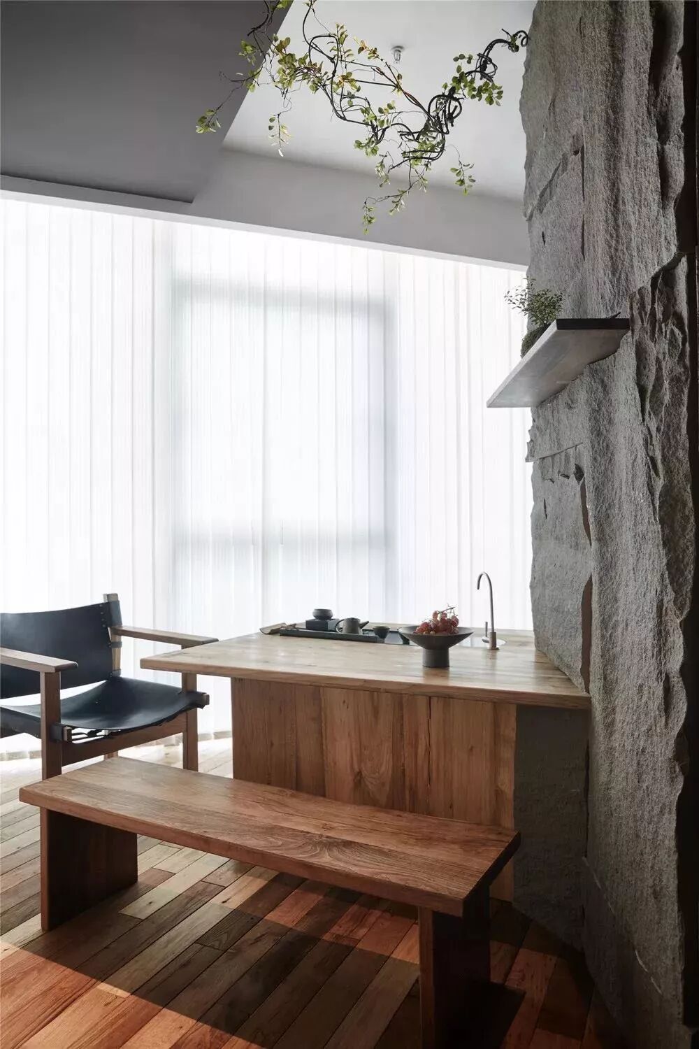茶室选材尽可能的以自然材料为主,如竹、木、石等,环保质朴又能带来大自然的气息,这些天然材料不会因为时间而过时,而是“越旧越有味道”。
