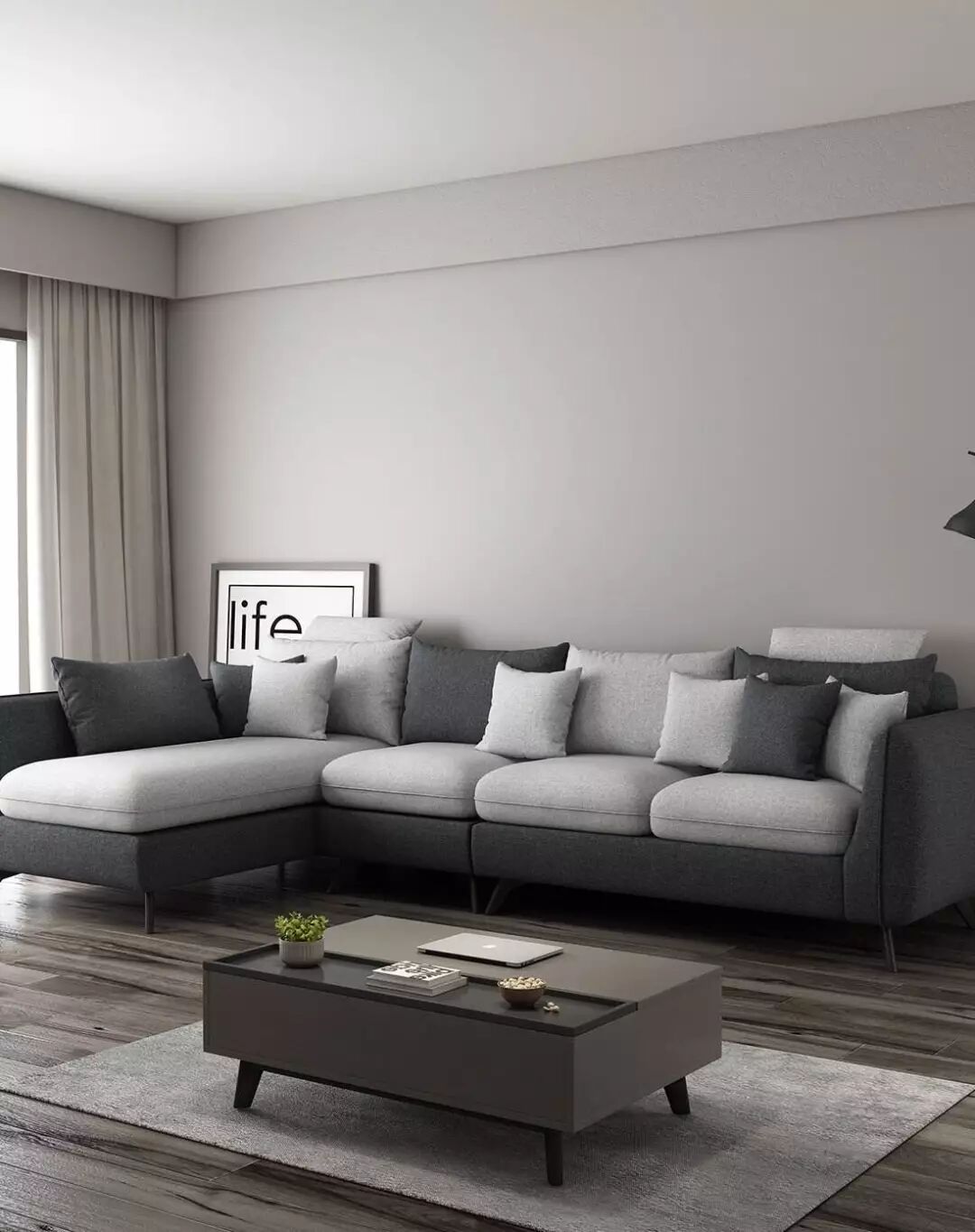 有飘窗或者落地窗的客厅可以试着别另外买沙发了,合理利用好眼前现成的沙发还能剩下一笔钱呢。要是对飘窗不满意可以在窗边外加一套三人沙发,这就又成了L形的布局;