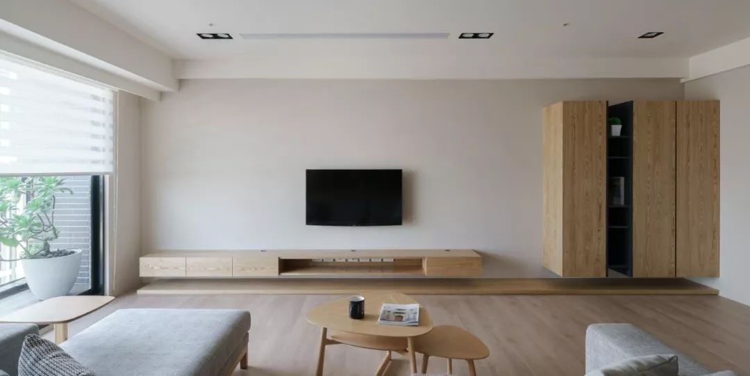 纯粹的木质材料,搭配大量的留白墙面,可以缔造一种简约到极致的美好感受,以从容优雅的姿态书写着现代生活的新篇章。