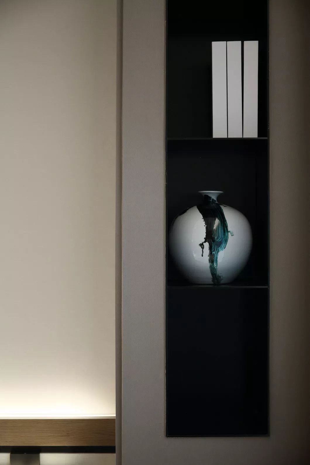 艺术和抽象的软装造型为空间带来极具张力的感觉,现代时尚风格与细腻的艺术气息的植入,使空间特质既满足了现代创新的审美诉求,又有古典的优雅,散发阵阵诗意和浓郁的现代人文气息,于形与意、态与势之间展露出沉稳的贵族风范。