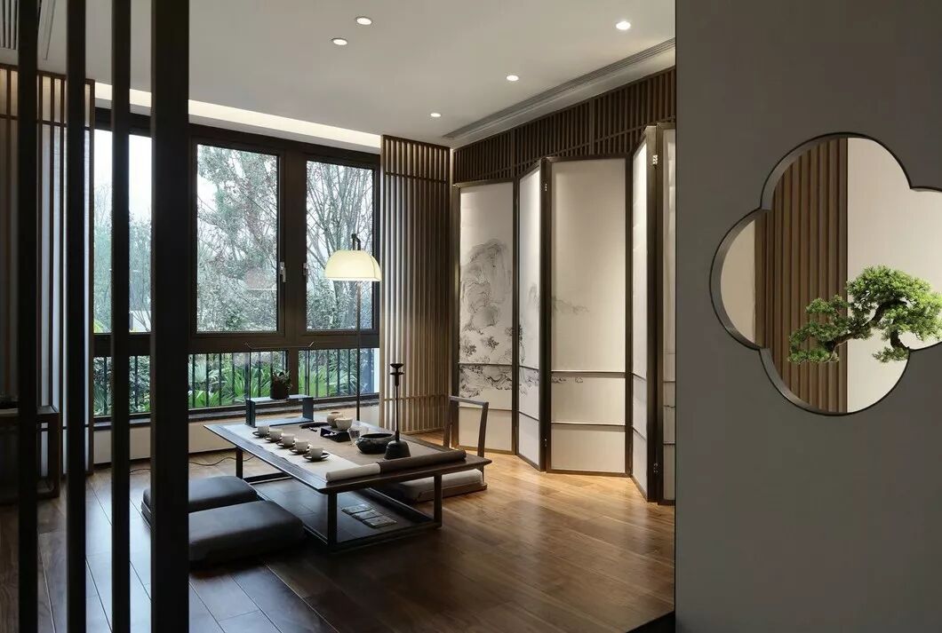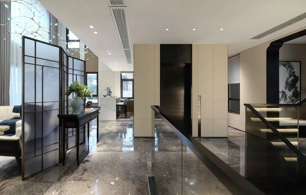 屏风和玄关柜形成入口视觉停顿的焦点,以营造空间的层次感,吊足观者的胃口。