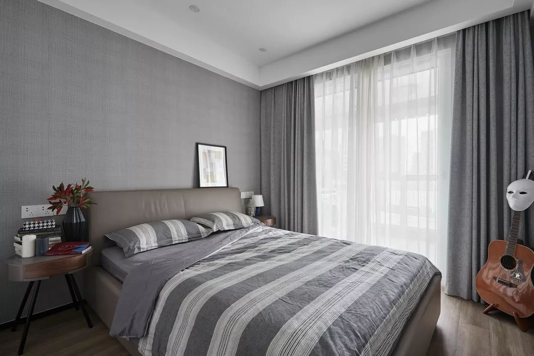 卧室在用色原则上与全屋保持一致,并通过充足的采光和洗墙灯提升亮度,达到了明亮、优雅的空间效果。