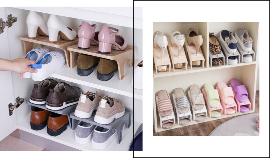 除此之外还有这样的日式鞋子收纳架,更轻盈小巧,能根据鞋子随意调节高度。