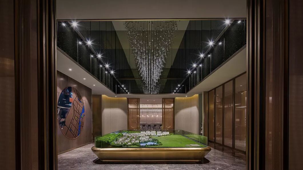 模型区以珠宝盒造型为设计灵感,深色透明玻璃幕盒将视线无限延伸,如同层层叠叠的漩涡,让视线模糊、时空错乱;