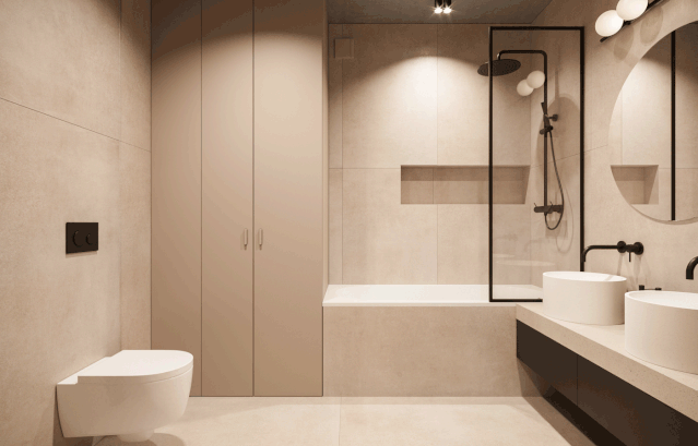 公寓主卫以浅棕色为主色调,简洁舒适,温暖优雅。