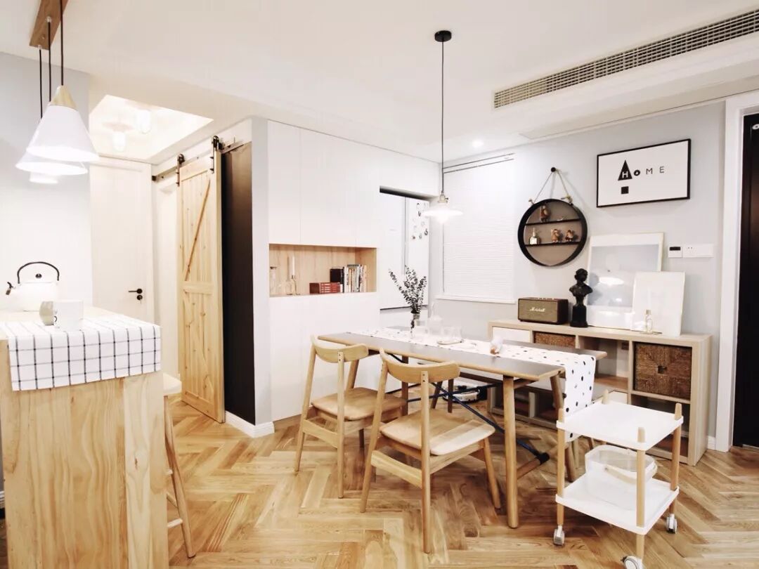 像烤箱、冰箱等电器,如果厨房不方便放的话,也可以放到餐边柜里预留的格架里,整体空间更加丰富实用。