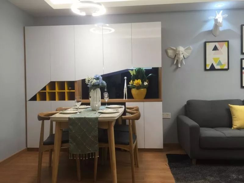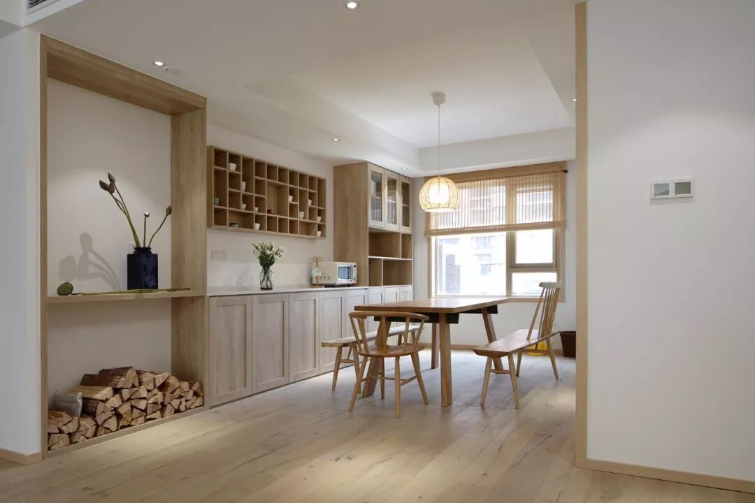 中间留空出空层或展示架,可以作为摆放水壶、水杯的位置,也可以作为花瓶、展示品的格架,增添餐厅空间的实用与优雅气氛。