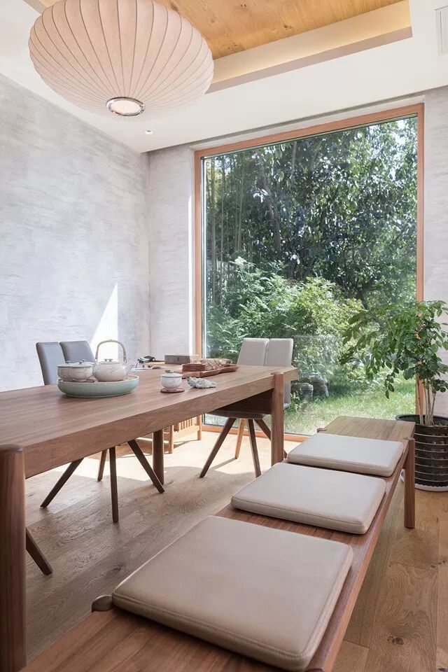 “无形墙”的设计正在风靡全球,利用大大的落地窗,将窗外的景色引入室内,无需煞费苦心的寻找带有自然元素的壁纸,窗外生机勃勃的花草就是做好的,视野非常好,可谓是把视野享受做到了极致。在此设计一个茶室,岂不美哉。