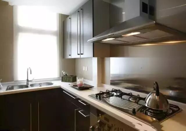 通常操作台的高度为80~85厘米;水槽两侧一般应各有一个长40~60厘米的台面,一边供放置未洗过的菜,一边放置洗过的菜;如果餐桌不在厨房里,那么灶台边上还应设一块40~60厘米长的台面,用来暂时放刚出锅的菜。橱柜的背面要做挡水板,即背面要高出台面一些,以防止水流到橱柜的背面,使基材膨胀,造成开裂、脱落等现象。