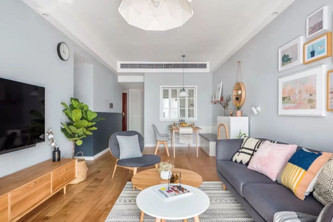 小尺寸的茶几就能满足日常居住的功能,保持生活动线流畅,也能方面腾空客厅成为宽敞舒适的活动区。