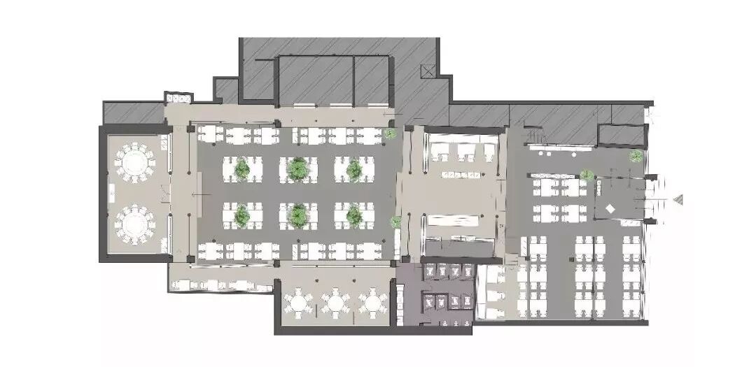无形之中,设计师将空间赋予一种浪漫气息,吊灯点点,星光漫天,绿意丛生,用餐之中更多的是视觉与精神的饕餮之宴。