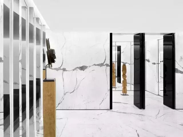 典雅高贵的白色大理石已逐渐成为设计领域的宠儿,当巴黎的SAINT LAURENT店用白色大理石进行了一次改造后,整个空间显得通透轻盈,充满了高端设计的既视感。镜面和金属元素的加入,又赋予了空间更多的层次,整个390平米的店面由此变得耳目一新,令人神清气爽。下面我们带您领略白色大理石运用的精妙!