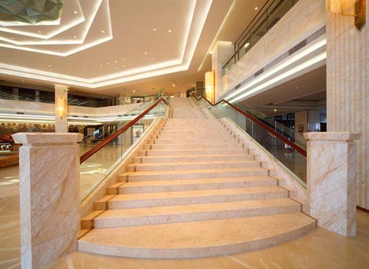 同时,保养时不应要求楼梯石材的底光过高,只要将表面清理至干净干燥,然后在上面直接保养即可,防止因为高光而给人造成不安全感。