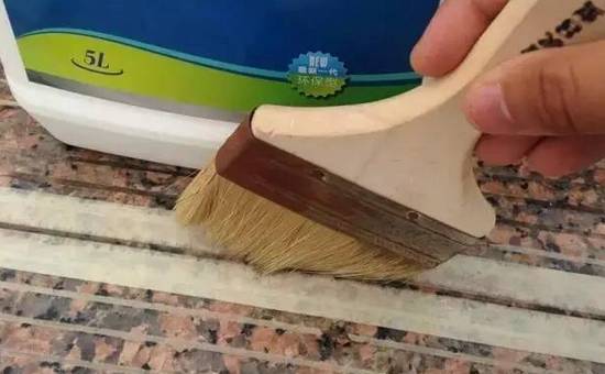 第三步:用毛刷将VD石材润色防护剂足量的涂刷到沟槽中(可以多涂一些),待防护剂干燥、干固即可。