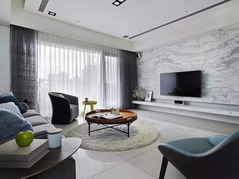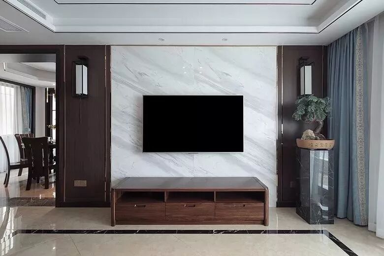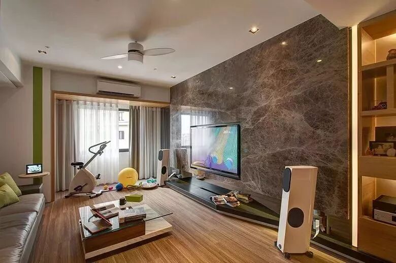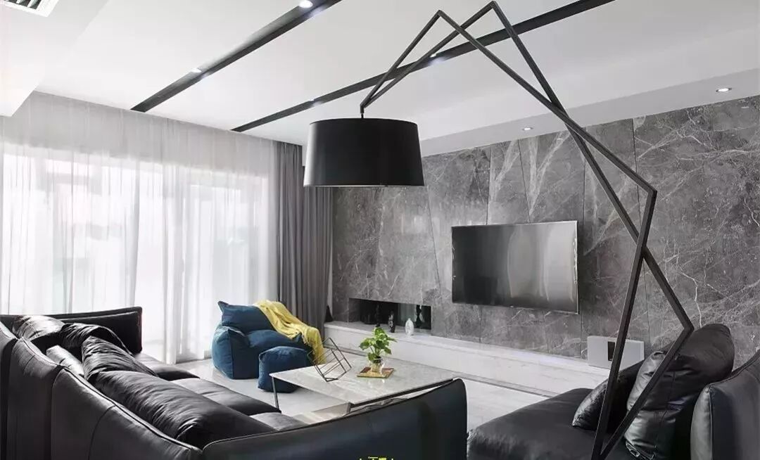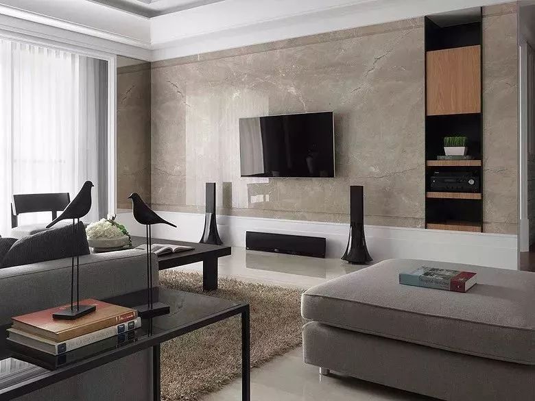一般来说,石材电视墙是在比较时尚的现代风格里面比较常用的设计元素,当然装在电视墙上也非常多案例,所以现代风格、尤其是后现代风格中,使用石材是比较容易搭配的选择。