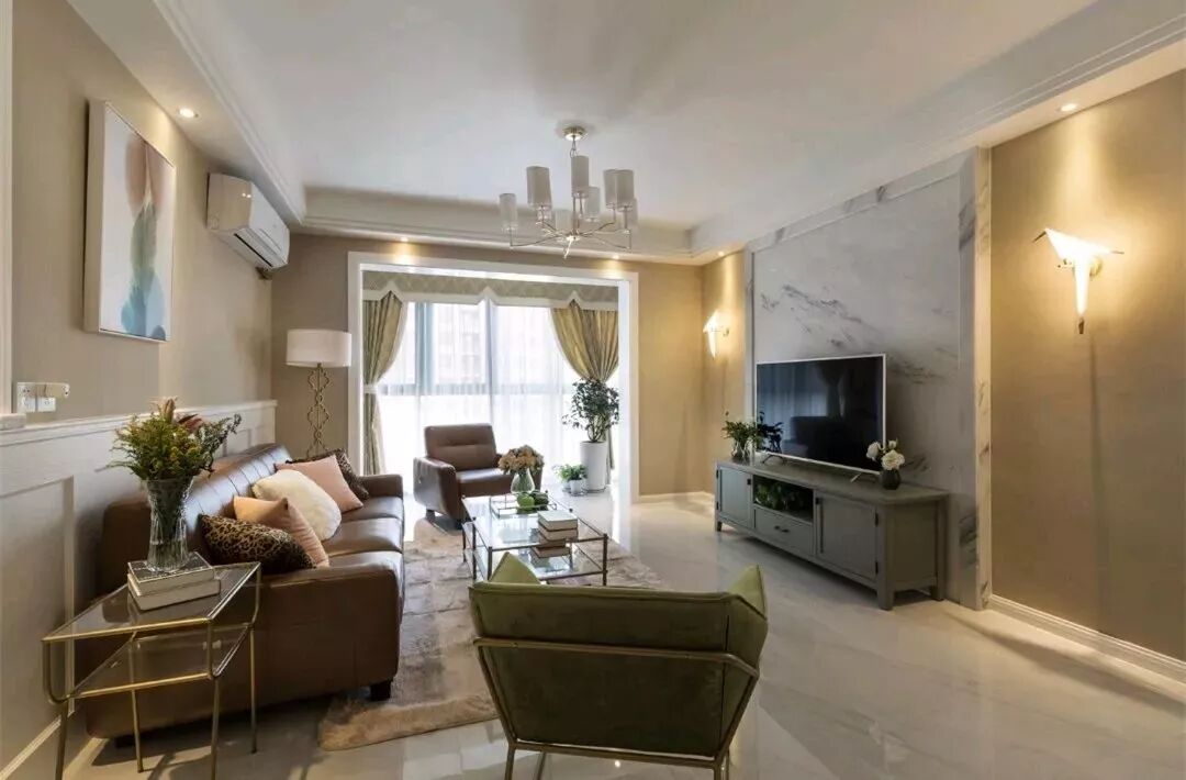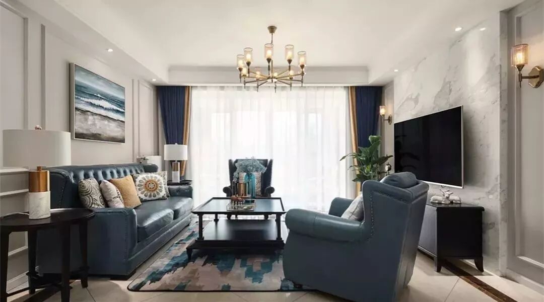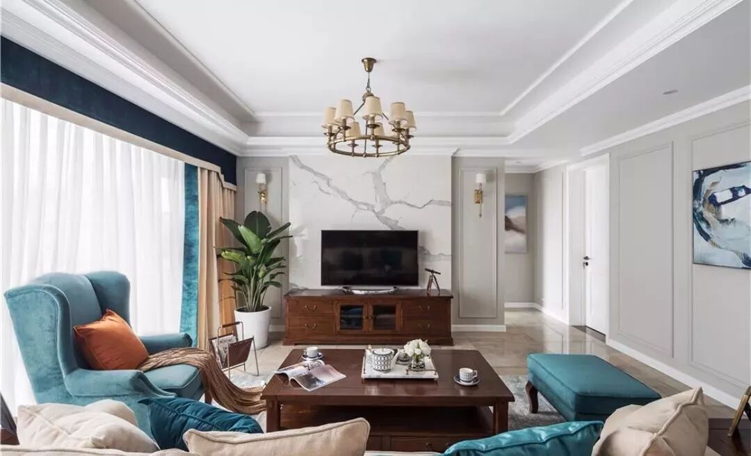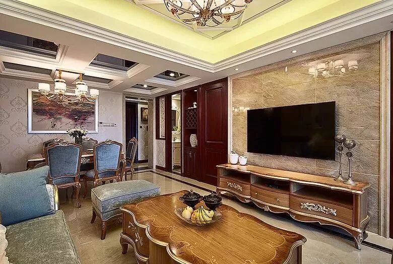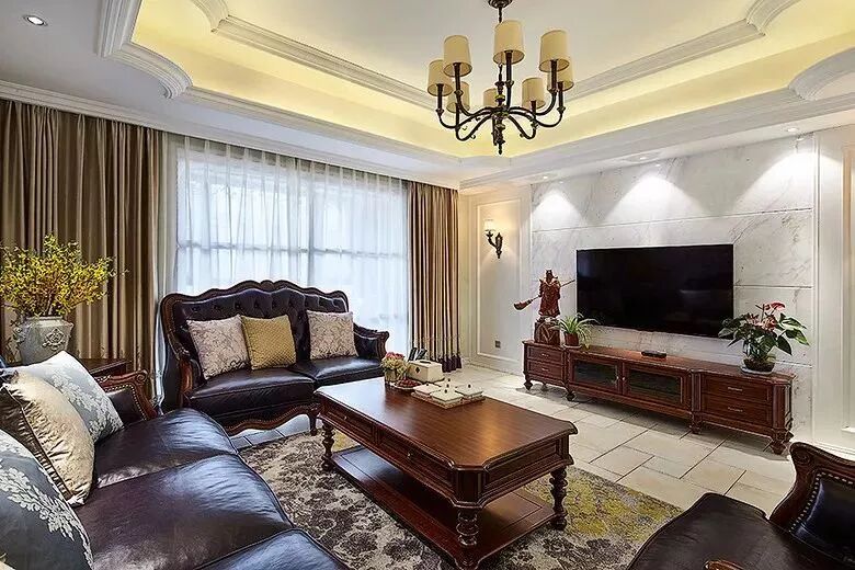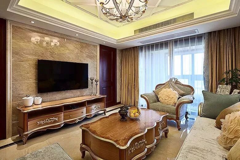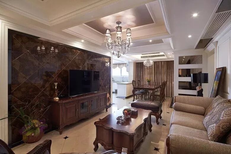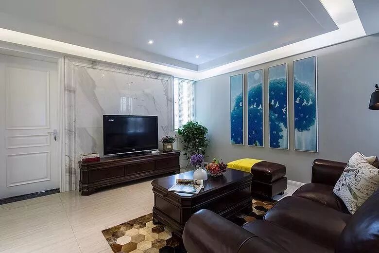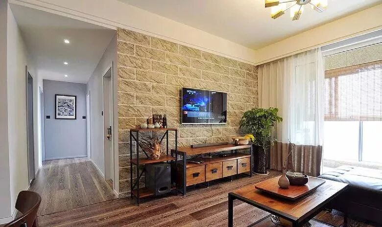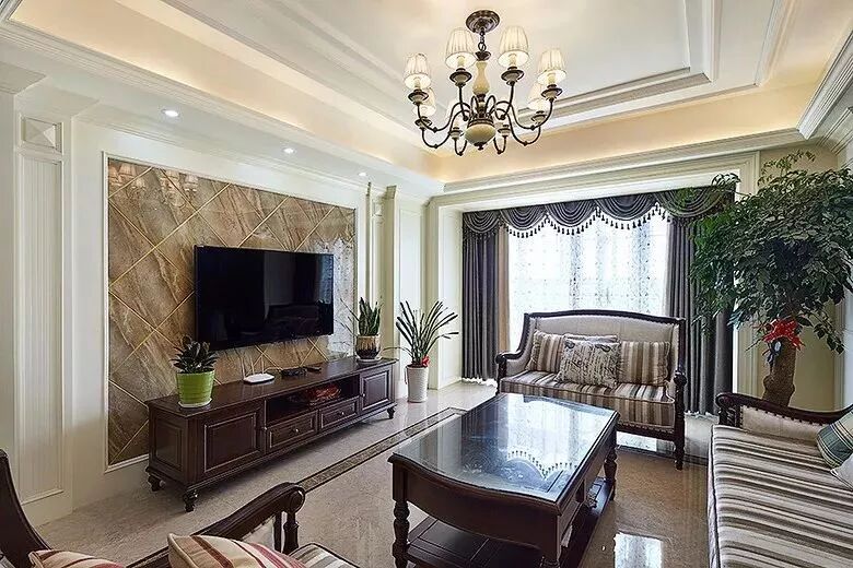 现代美式风格的装修,一般是以乳胶漆或壁纸处理电视墙的;运用石材,如果处理得当的话,也可以可以搭配出效果的。