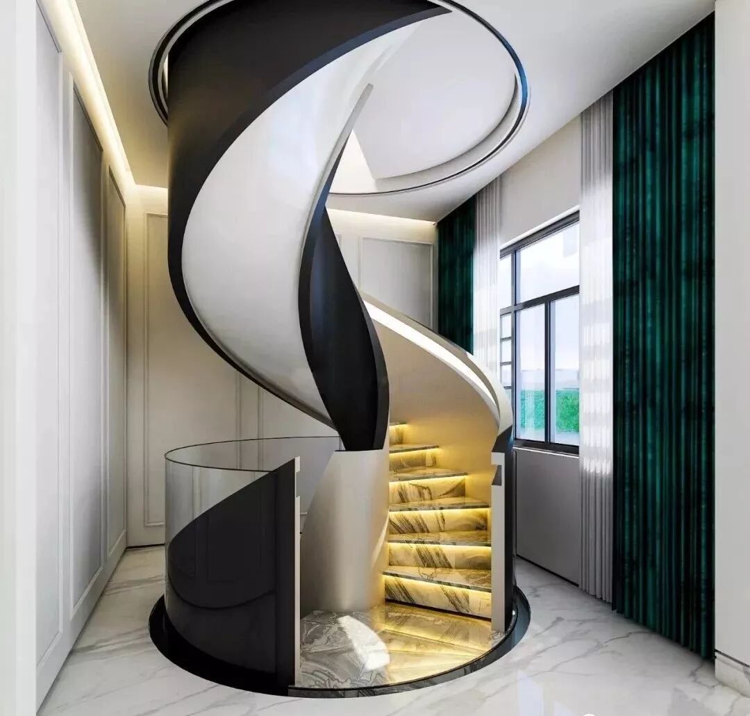 4、大理石内部楼梯适合任何配置,结构可以采取任何形式。如果是螺旋形楼梯,大理石也是完全适应的。