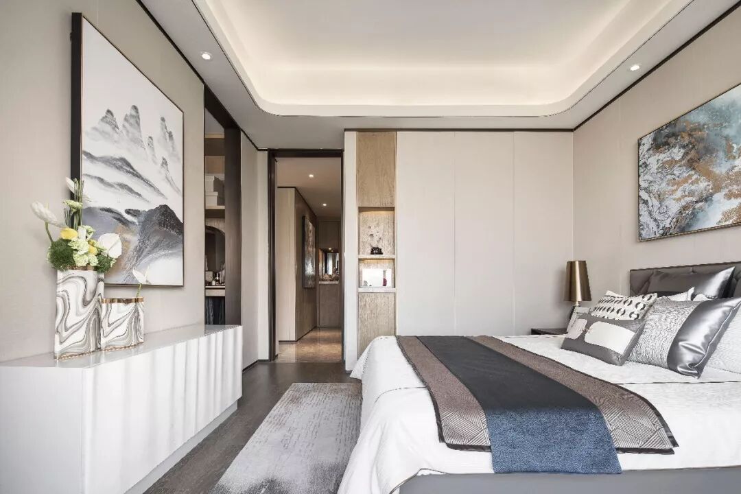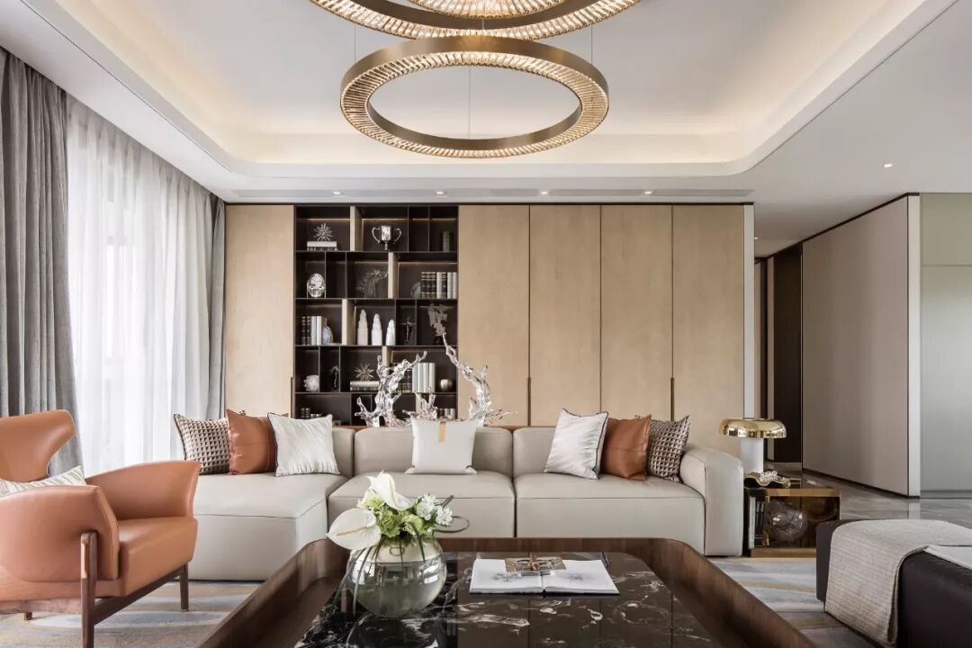 家对于精英阶层而言,豪奢不是最重要的,传达一种充满“精英感”的生活态度或许更为重要。因此比起视觉表面的迎合,凸显品味与个性,拥有适宜的大小、丰富的功能、舒适的氛围才更能打动他们。所以,矩阵鸣翠设计的软装抓住“人居哲学”这一关键点,在把握美好生活这一诉求的基础上,用现代艺术手法升华整体空间。