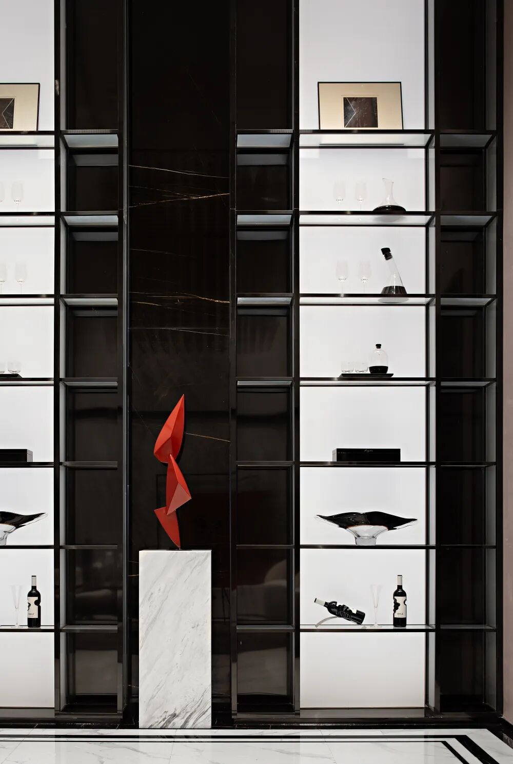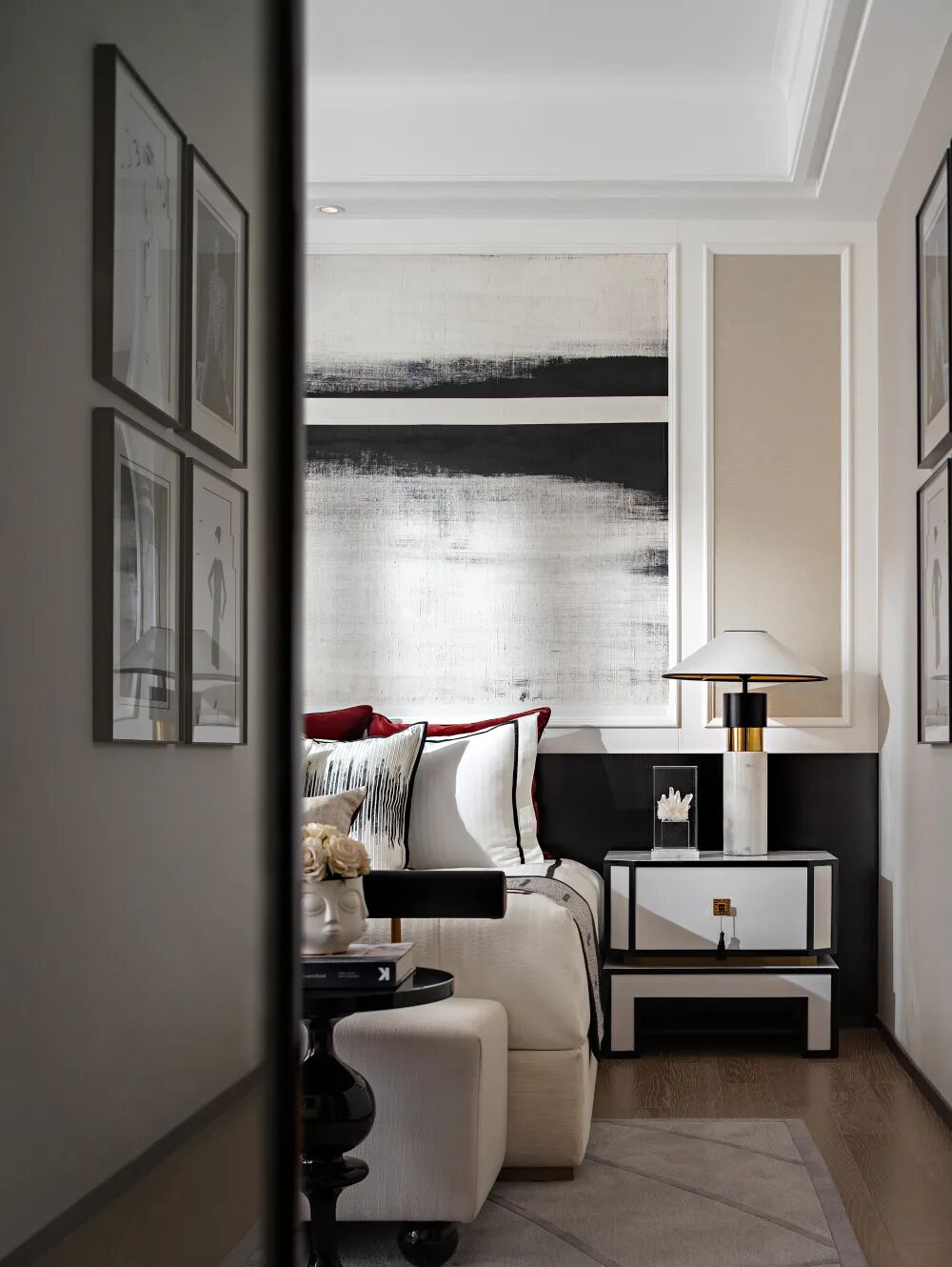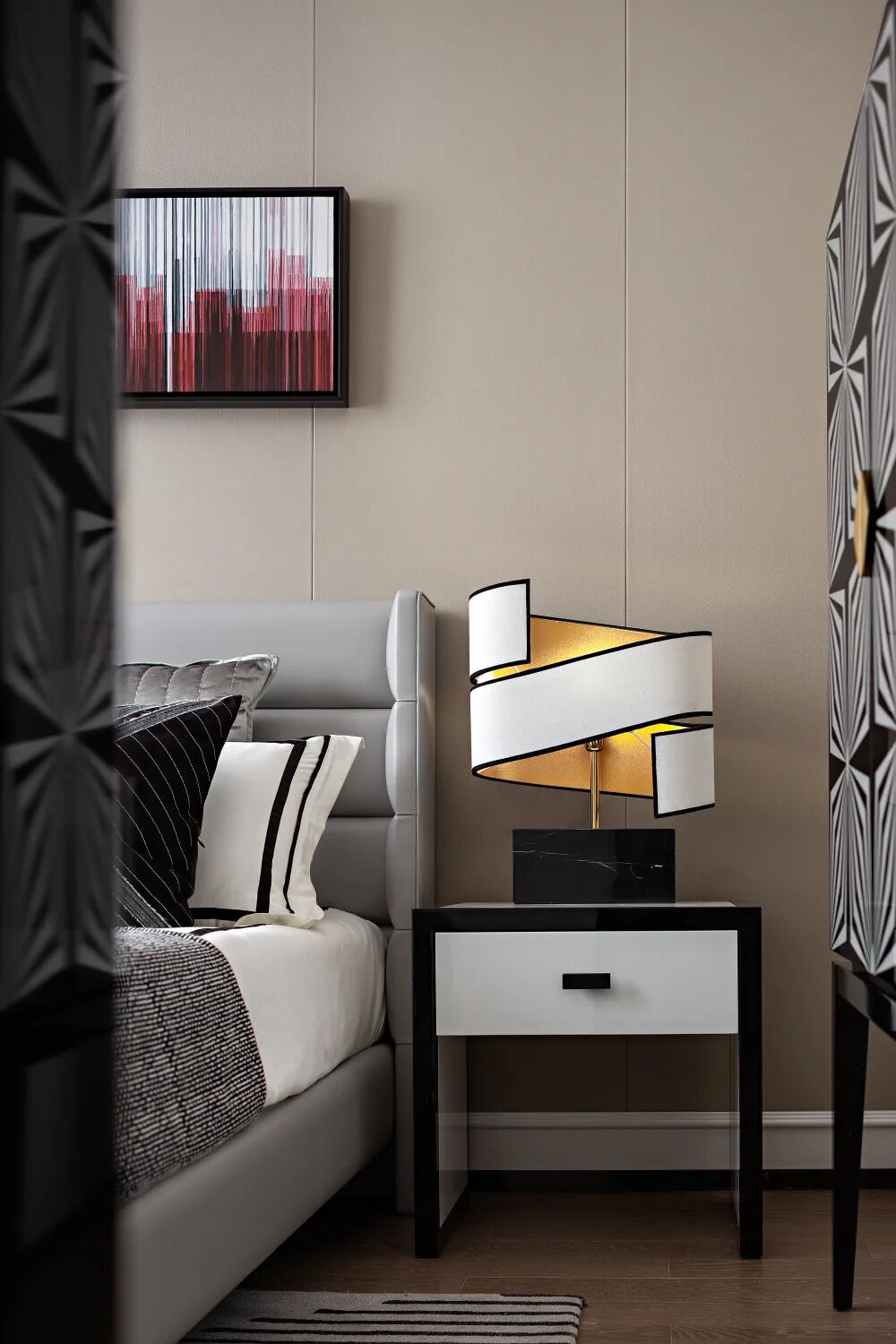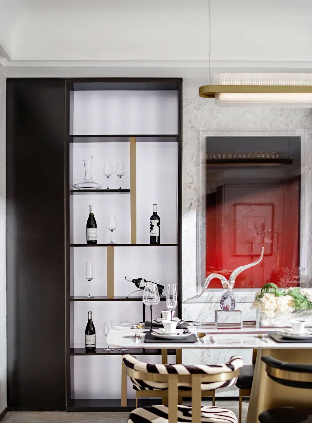 车水马龙从沉寂中苏醒,黑白色经典,与红绿一同绵长蔓延,环绕于富丽的金光下。设计师打造一种奢华的居家风情,艺术与舒适兼得,给美好生活一个轻柔依托。
