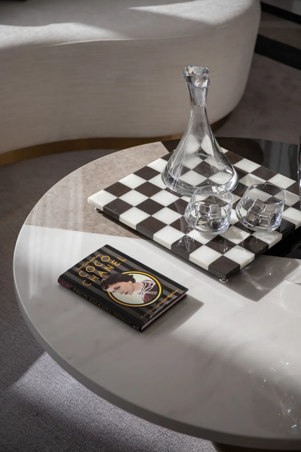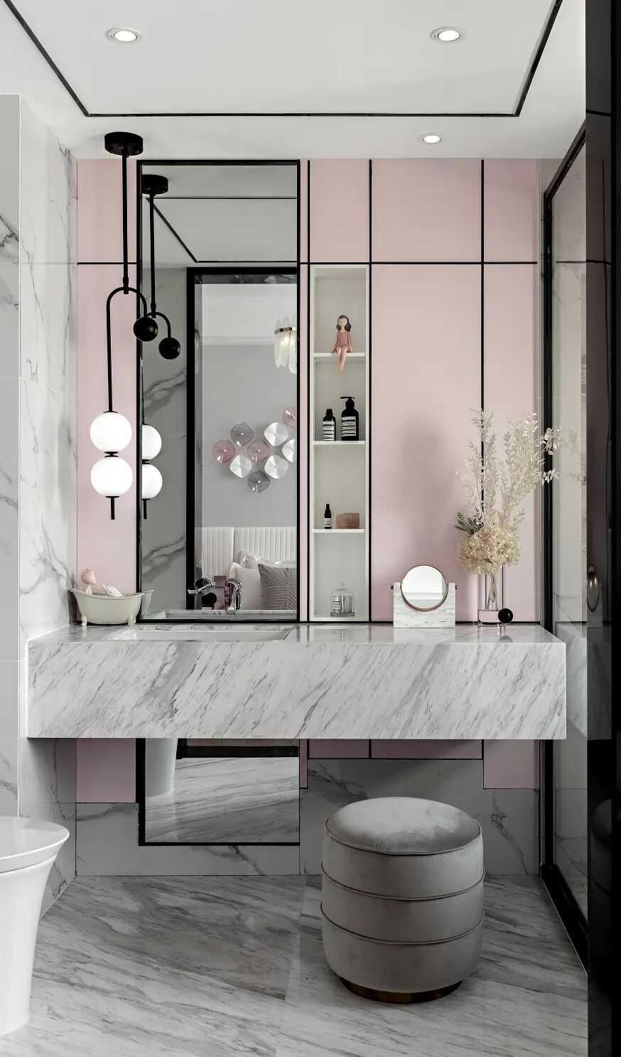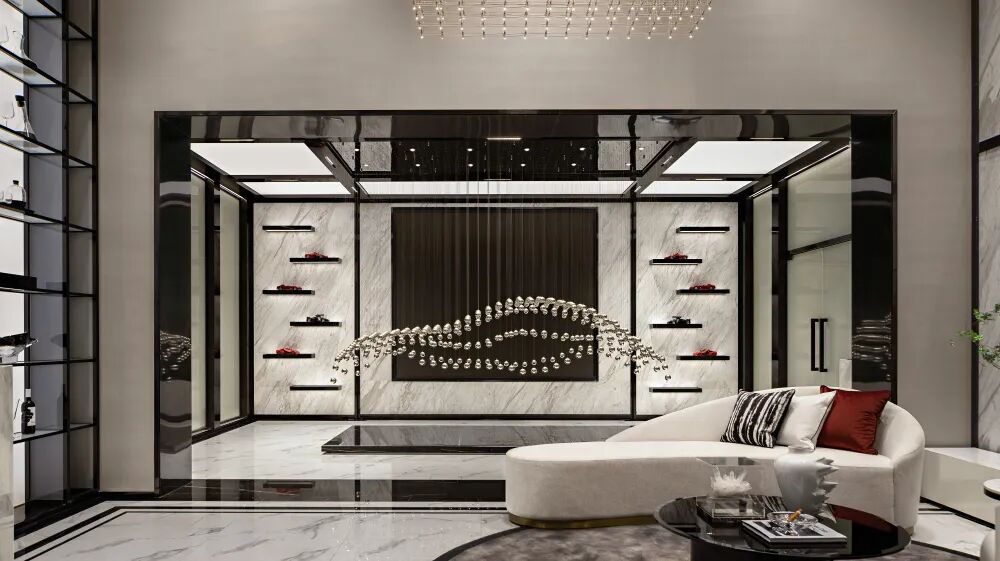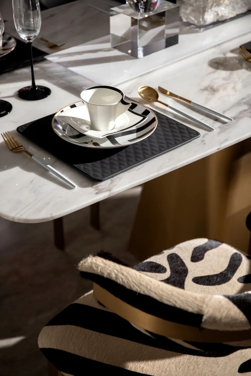 车水马龙从沉寂中苏醒,黑白色经典,与红绿一同绵长蔓延,环绕于富丽的金光下。设计师打造一种奢华的居家风情,艺术与舒适兼得,给美好生活一个轻柔依托。