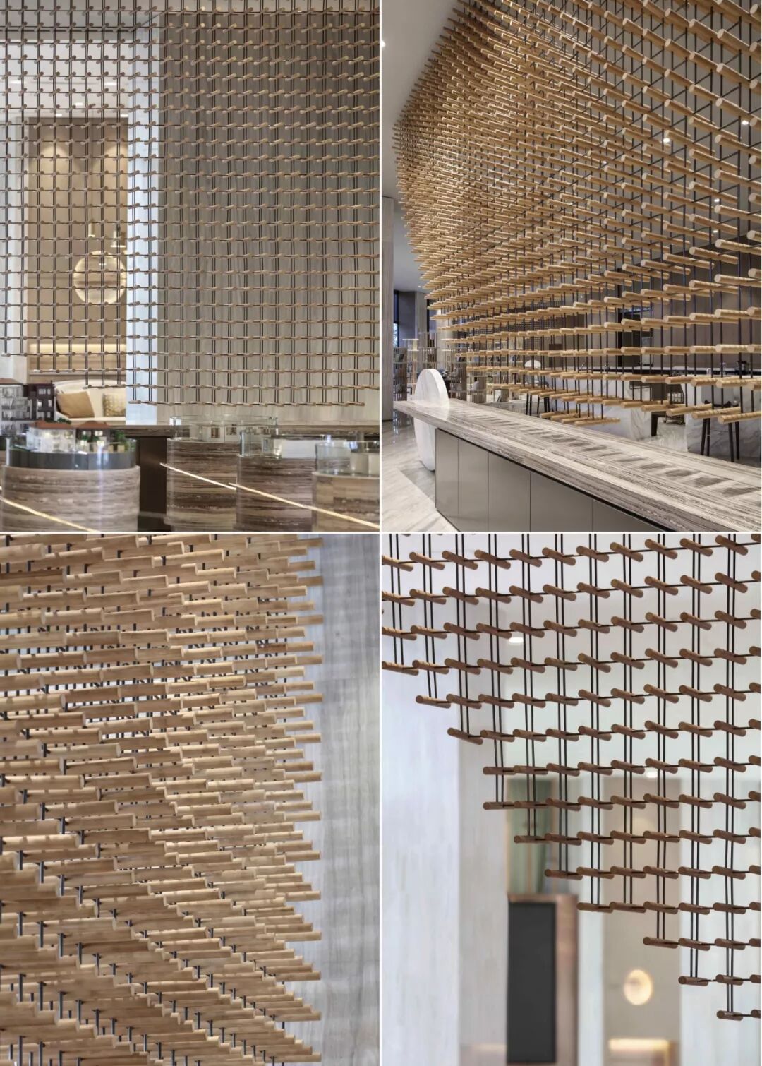 以茎和叶点缀沙盘空间如被竹林包围,创造空间的流动性与开放性,令空间传递细腻和温润的意象同时界定区域,让视觉艺术与空间浑然一体。