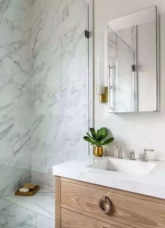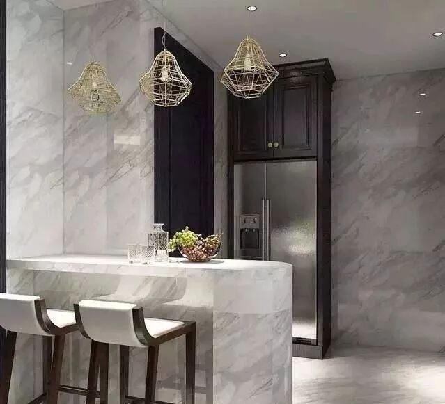 让大白墙质感翻倍的,只有大理石,这样的设计才是最顶级的!