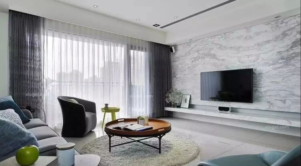 电视墙作为墙面部分,采用白色的大理石纹理,效果非常的简洁大气,搞卫生家也相对方便,非常的美观大雅。