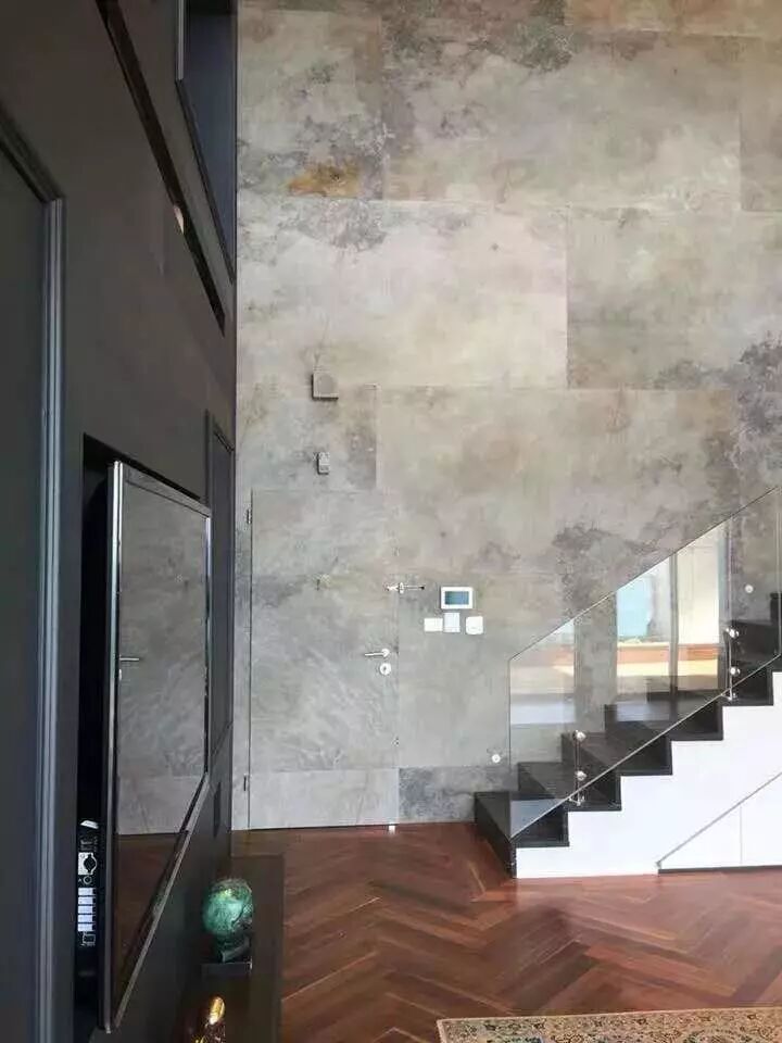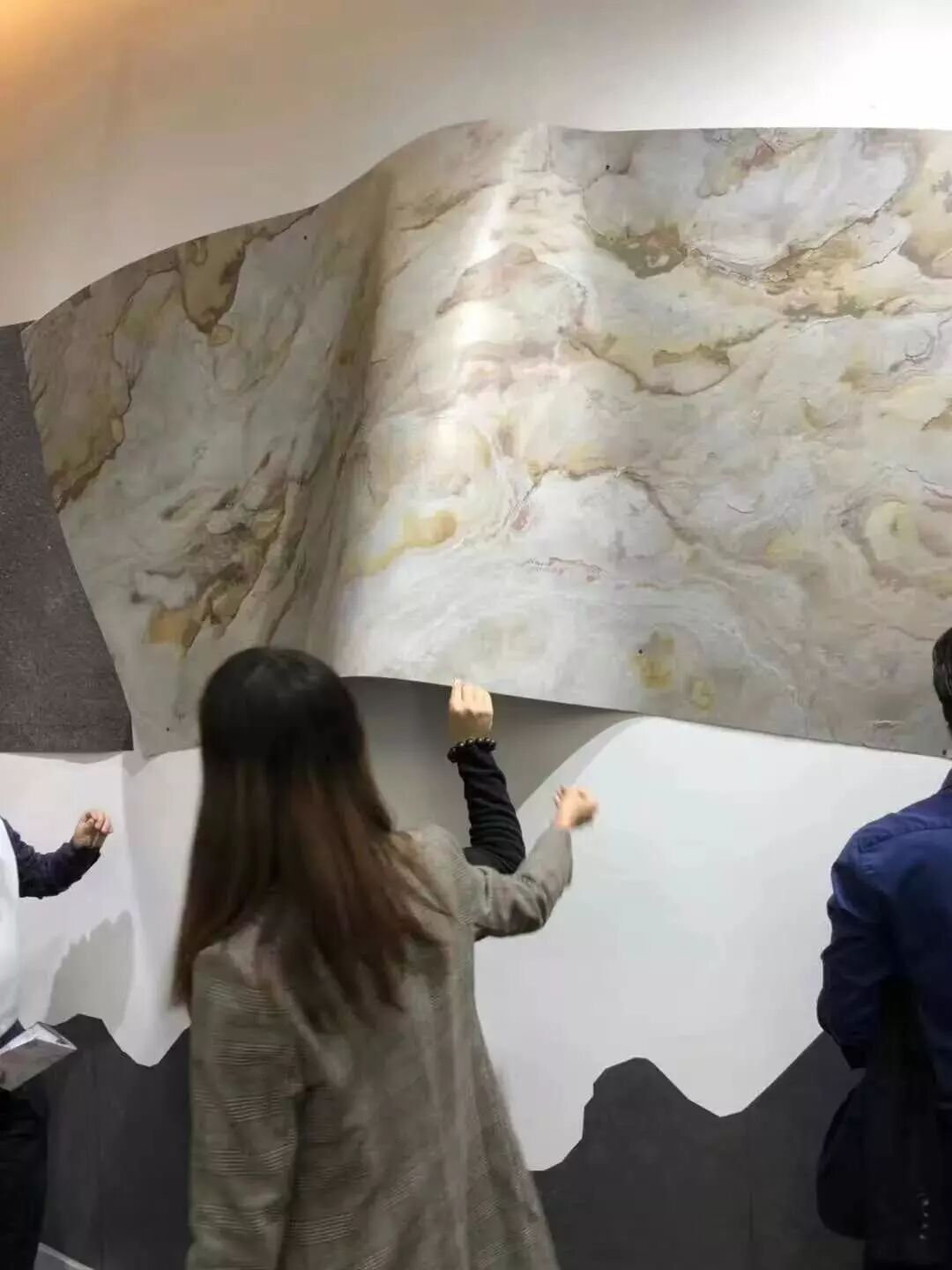 这种厚度已经和壁纸相差无几,可以说它是“石材壁纸”。它也是一款非常安全的材料,它的表面是纯天然的板岩,页岩或石英云母,背面是玻璃纤维衬底。