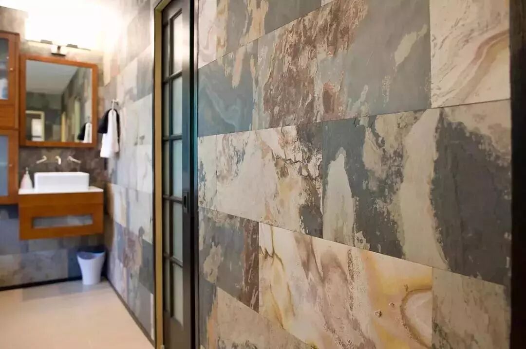 它的表面和普通石材板面没有差别,完全保留了石材的天然纹路和肌理,每个肌理纹路都是独一无二的,并非仿石材产品膜印产品纹路。