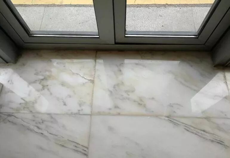 结论:南方空气湿度较大,雅士白石材本身质地含一定铁质成分,铁质成分经水和氧化反应生成锈迹和锈斑,还有一种原因是水泥砂浆湿贴,水泥中的碱性物质由石材背面浸入,与石材本身的铁质成分作用生成锈斑。