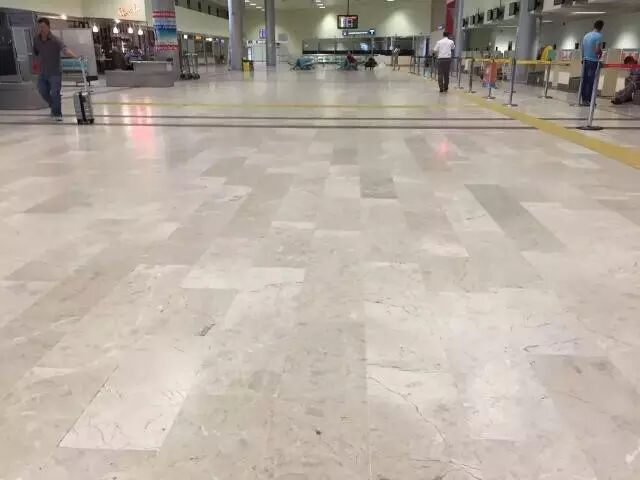 下图是意大利最大的民用机场,列奥纳多?达芬奇国际机场的地面石材,色差、黑斑、断裂线随处可见。这要搁在国内,非得砸了重铺不可。按理说,号称“石材王国”的意大利,选材上不应出现这种问题啊?