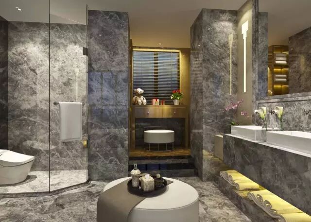 如将色差石材错落有致的排列,或将颜色相近的进行区分排列。石材色斑、色胆、皱纹等,国内许多施工过程中,会挖掉进行填补,但如果将类似的缺陷石材,集中到一块进行拼接组合,可以组合成独一无二的花纹图案。石材的断裂线、孔洞等,一种方法是可以修补,另一种方法是保留石材的缺憾之美、缺陷之美。