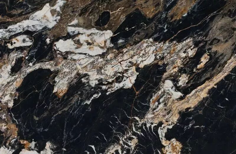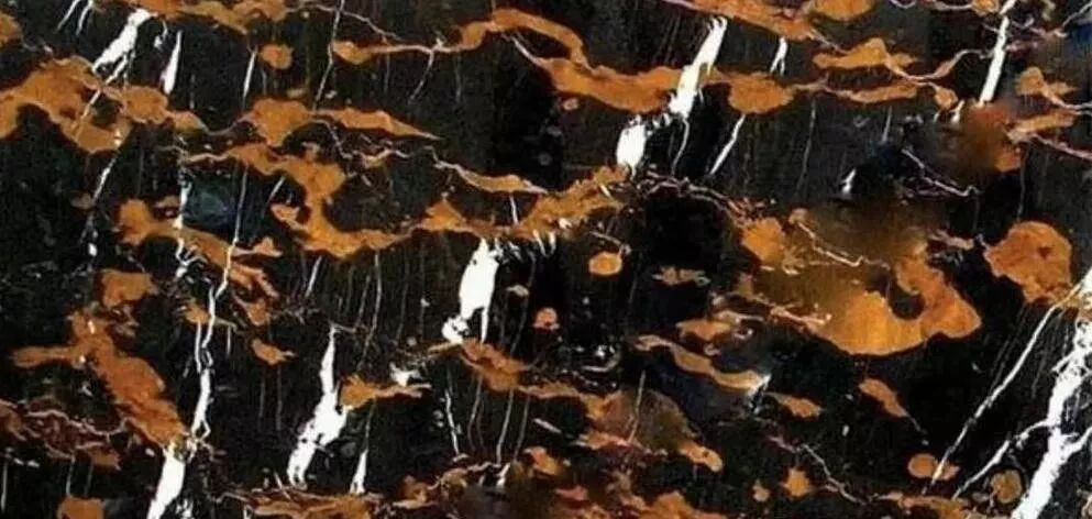 特点:黑色底,金黄色乱纹大理石,白色银线交错形成网状纹理。黑金花是天然大理石中非常名贵的石材品种之一。