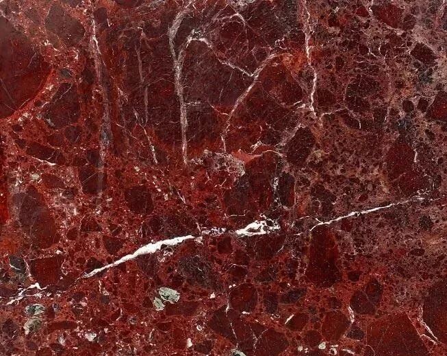 特点:石材为天然大理石,颜色鲜,而具有独特性,给人留下一种特殊的感觉,深颜色,有白花,遍布裂隙线,光泽度好,易胶补,越红越好,白花少,颜色分布均匀,无黑斑,绿斑,色差特别大,花纹差异大,颜色偏淡,易破。