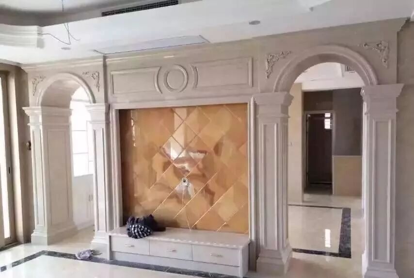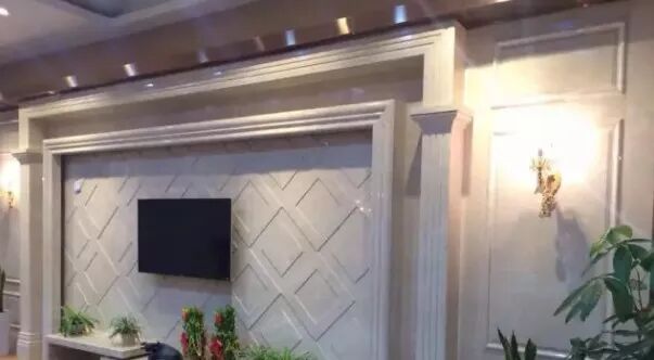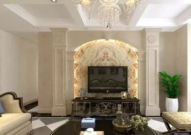 因为大理石独有的天然、大气和高档,收到众多年轻人的人比较青睐于。奢华的欧式罗马柱电视背景墙能让整个家居更显奢华,拉高整个家的颜值。