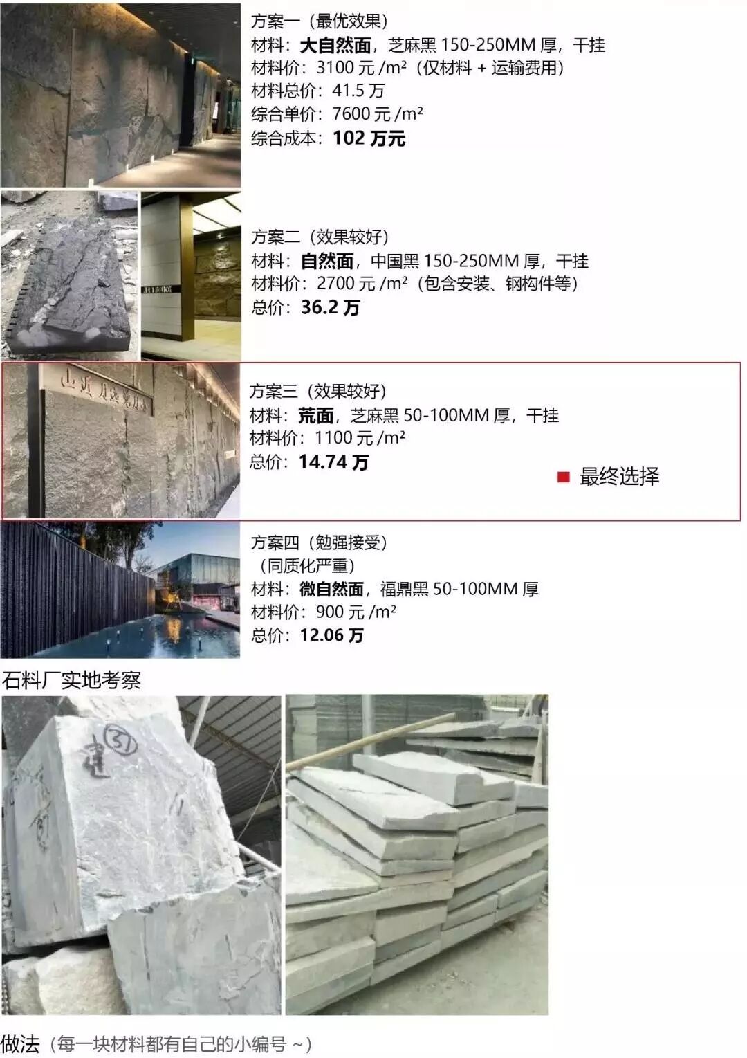 入口处有一道长 53 米,高 7.2 米的巨石墙,挂满 1 米以上超大尺寸的自然面中国黑荒料。