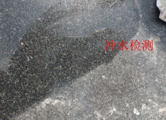 冲水后,石材不吸水,且水珠会顺势滑落。在初期展示时,石材做六面封闭防护是很有必要的。