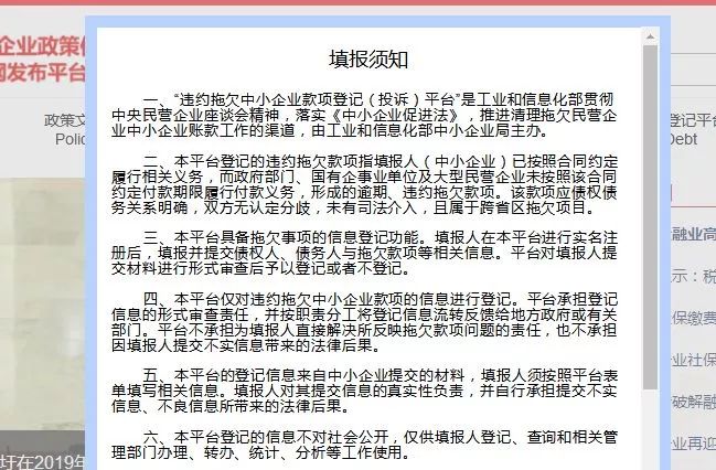 国家中小企业政策信息互联网发布平台(http://www.sme-service.org.cn)开通“清欠登记平台”窗口,违约拖欠中小企业款项登记(投诉)平台正式上线试运行。