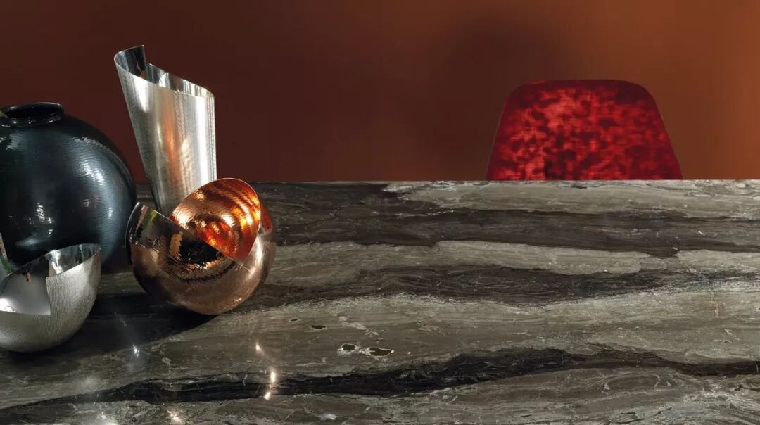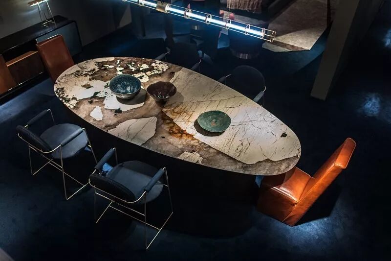 而大理石的镜面效果让桌面看起来色泽圆润,