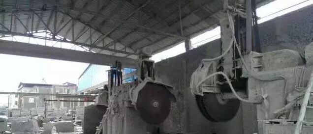 石头块走进加工厂,不是马上就变成漂亮的装饰石材,而是首先被切割成“大板”。