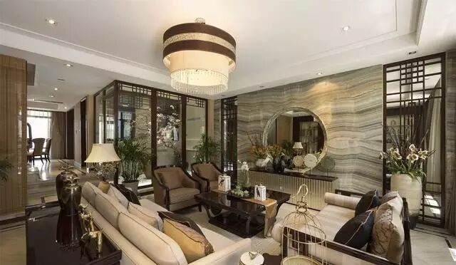 在大多数人的观念里面,中式风格的装修设计只能使用木材作为主要的装饰材料,毫无疑问在中国几千年的历史里面,木材当然是家里装饰的主材之一。但随着时代的发展,越来越多的人们在喜欢中式风格的同时,也爱上了石材的装饰,于是,在设计师天马行空的想象之下,便把石材融入了中式风格里面。