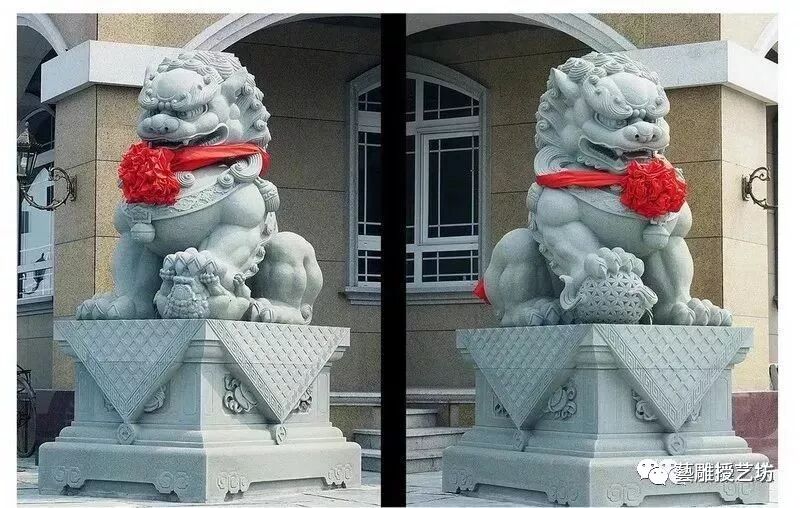 中国人历来把石狮子视为吉祥之物,在中国众多的园林名胜中,各种造型的石狮子随处可见。古代的官衙庙堂、豪门巨宅大门前,都摆放一对石狮子用以镇宅护卫。直到现代,许多建筑物大门前,还有这种安放石狮子镇宅护院的遗风不泯。
