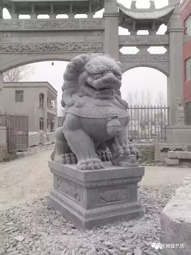 石狮子是以石材为原材料而雕塑成狮子的具有艺术价值和观赏价值的雕塑品。作为汉族传统文化中常见的辟邪物品。最早的石狮是东汉高颐墓前的石狮。是汉族传统建筑中经常使用的一种装饰物,在中国的宫殿,寺庙,佛塔,桥梁,府邸,园林,陵墓,以及印钮上都会看到它。但是更多的时候,石狮是专门指放在大门左右两侧的一对狮子。
