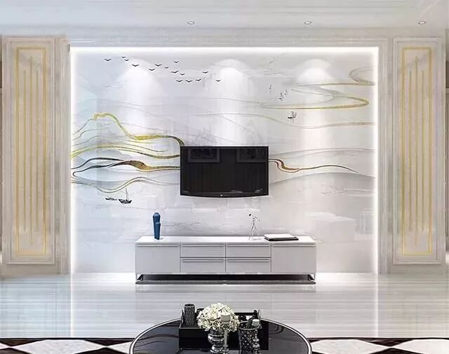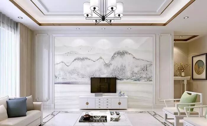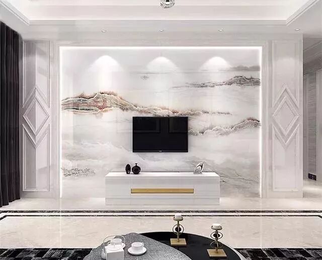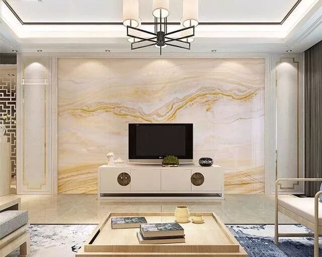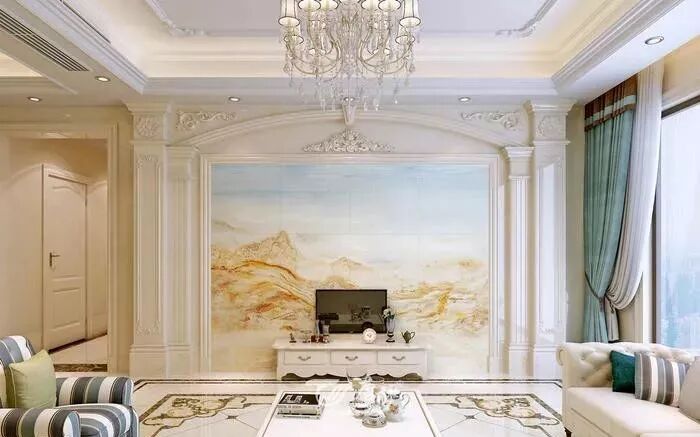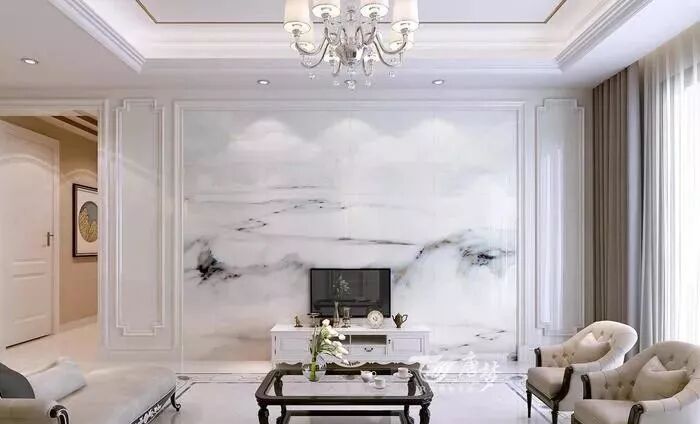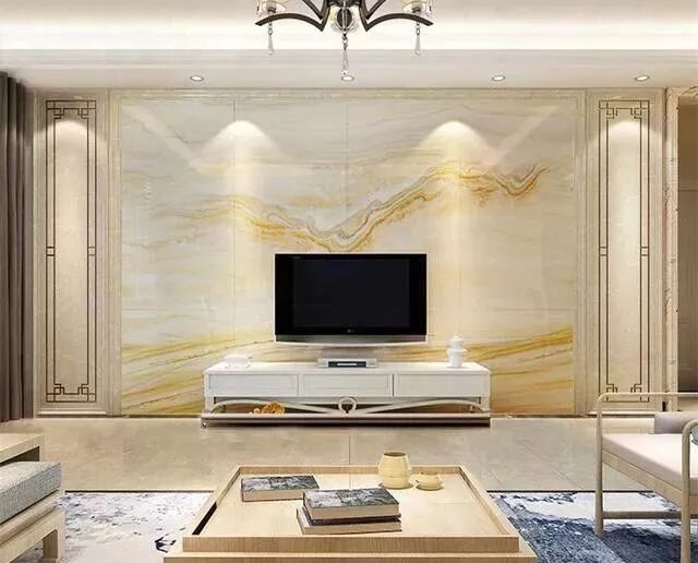 电视背景墙的边框搭配,石材护墙板可谓是“百搭之王”,无论你是中式、欧式还是现代图案,石材护墙板独特的简约造型都能和电视背景墙完美融合,打造最流行的家居客厅新时尚。