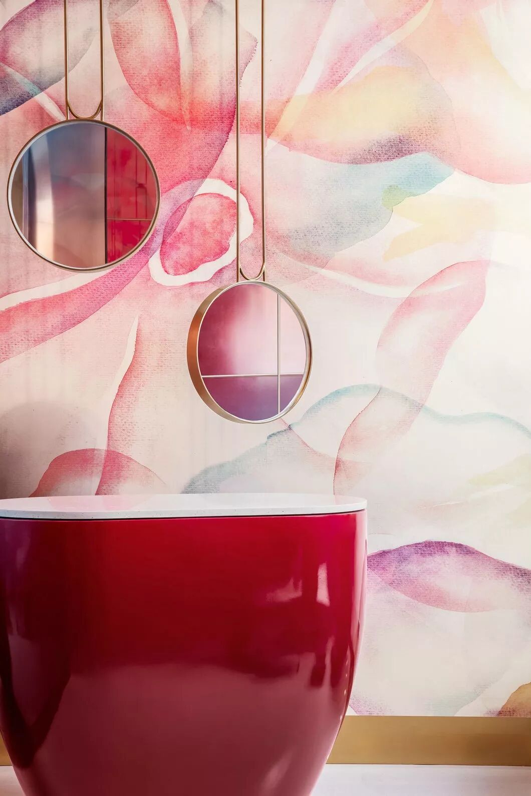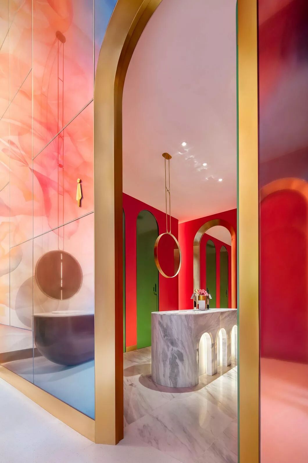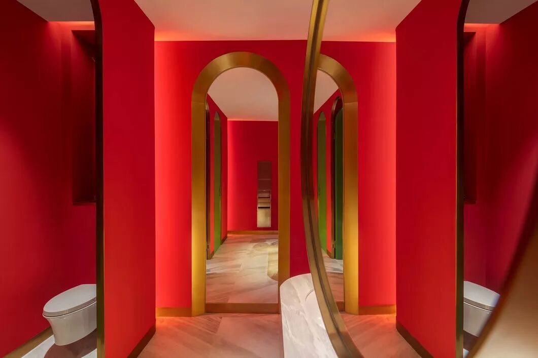 墙面的艺术镜面玻璃,使原本瘦高的空间无限拉伸,也赋予了中间花朵更多的色彩变幻。