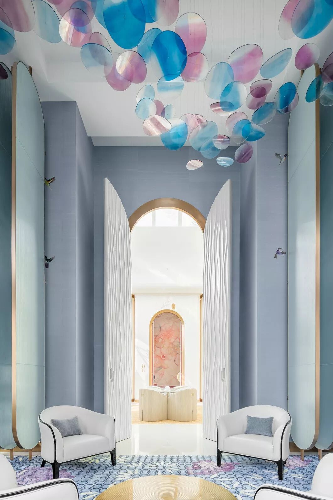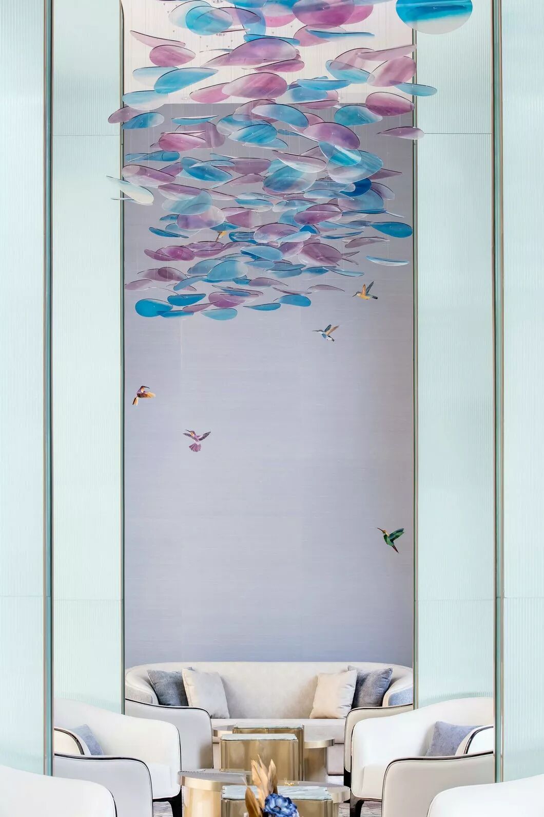 墙上的蜂鸟与整个空间融为一体,犹如被梦幻的景致吸引至此,久久不愿离去。