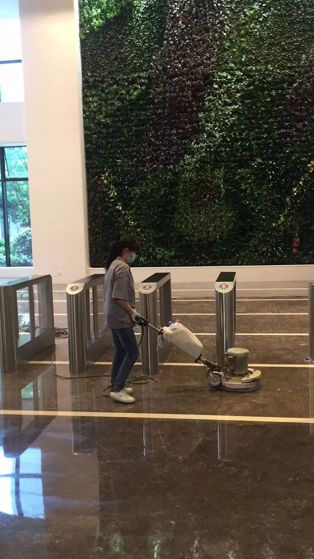 用洗地机+水+少量的中性清洗剂,对石材做定期的深度清洗。这时候,就需要用到大量水。但用的时候,要配合抽机。洗地机清洗过后,用大功率抽机,及时将水抽干。抽机的功率、抽力越大越好。